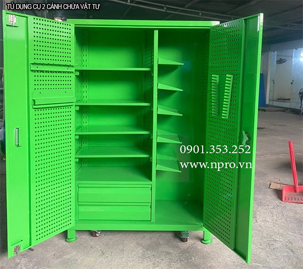 TỦ DỤNG CỤ ĐA NĂNG – GỌN GÀNG & CHUYÊN NGHIỆPTrong xưởng cơ khí, gara hay phòng kỹ thuật, mọi dụng cụ đều cần an toàn, ngăn nắp và dễ tìm. Và đó chính là lý do tủ dụng cụ đa năng ra đời.Với thiết kế kết hợp thông minh, NPRO giới thiệu các sản phẩm tủ sắt sơn tĩnh điện đa năng, phù hợp mọi nhu cầu sử dụng:TỦ DỤNG CỤ ĐA NĂNG NPROSắt sơn tĩnh điện dày dặn: chống gỉ, bền bỉ theo năm tháng, màu sắc tùy chọn.Bảng treo: treo dụng cụ thường xuyên sử dụng, thao tác nhanh, dễ thấy.Hệ thống kệ chịu lực, sắp xếp gọn gàngNgăn kéo: phân loại chi tiết nhỏ, linh kiện, phụ kiện gọn gàng.Khóa 2 điểm an toàn, bền bỉBánh xe di chuyển hoặc chân chén cân chỉnhKhông chỉ là chiếc tủ, mà là giải pháp lưu trữ toàn diện: giữ không gian gọn gàng, làm việc chuyên nghiệp, nâng cao hiệu suất mỗi ngày.Tủ dụng cụ 2 cánh 3 ngăn 2 khay KT: 1000Wx550Dx1800Hmmxuất xứ: Việt NamNhãn hiệu: NPROThông số kỹ thuậtKT: 1000Wx550Dx1800HmmGồm tủ 3 ngăn kéoSử dụng tay nắm nhựa, ray bi giảm chấn 3 tầngPhía lưng tủ có vách treo dụng cụ 2 cánh có vách treo dụng cụCung cấp kèm 2 khay di độngChất liệu: thép tấm dày 1.2mm sơn tĩnh điệnTủ dụng cụ 2 cánh 3 ngăn 2 khay KT: 1000Wx550Dx1800Hmmxuất xứ: Việt NamNhãn hiệu: NPROThông số kỹ thuậtKT: 1000Wx550Dx1800HmmGồm tủ 3 ngăn kéoSử dụng tay nắm nhựa, ray bi giảm chấn 3 tầng hiệu Hafeler (20-25kg/ ngăn)Phía lưng tủ có vách treo dụng cụ 2 cánh có vách treo dụng cụCung cấp kèm 2 khay di độngChất liệu: thép tấm dày 1.2mm sơn tĩnh điện– Bảo hành tận nơi cho các sản phẩm lỗi của nhà sản xuất– Giao hàng trên toàn quốc, miễn phí vận chuyển tại Tp.HCM– Vận chuyển đi các tỉnh được tính phí theo cước– Đối với hàng có sẵn thì có thể giao luônNPRO chuyên CUNG CẤP theo yêu cầu: bảng treo dụng cụ, bàn nguội cơ khí, tủ đồ nghề, xe đẩy dụng cụ Xem chi tiết Lượt xem: 11 In bài viết Đăng mới Xe máy, xe đạp điện Tủ đựng đồ nghề di động (Xe đẩy) - Tủ 3 ngăn 5 ngăn 7 ngăn Giá bán: , Điện thoại: 0901353252, Tủ để đồ nghề cơ khí ngăn kéo/tầng, có bánh xe Giá bán: , Điện thoại: 0901353252, Xe đẩy dụng cụ giá treo - 3 ngăn hàng sẵn, giao hàng tận nơi Giá bán: , Điện thoại: 0901353252, Tủ đồ nghề dạng ngăn kéo di động Giá bán: , Điện thoại: 0901353252, Tủ đồ nghề kết hợp (ngăn kéo và khoang tủ) Giá bán: , Điện thoại: 0901353252,