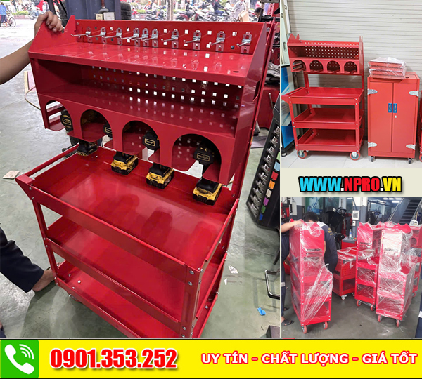 Xe đẩy đựng đồ nghề nhà xưởng gara - Xe đẩy 2 ngăn, 3 ngăn, 5 ngăn Giá bán: , Điện thoại: 0901353252,
